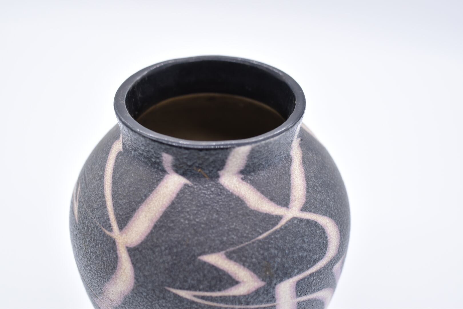 ドローイングかと思いきや、重ねな塗りした釉薬を削り取る事で生まれた帯のようです。