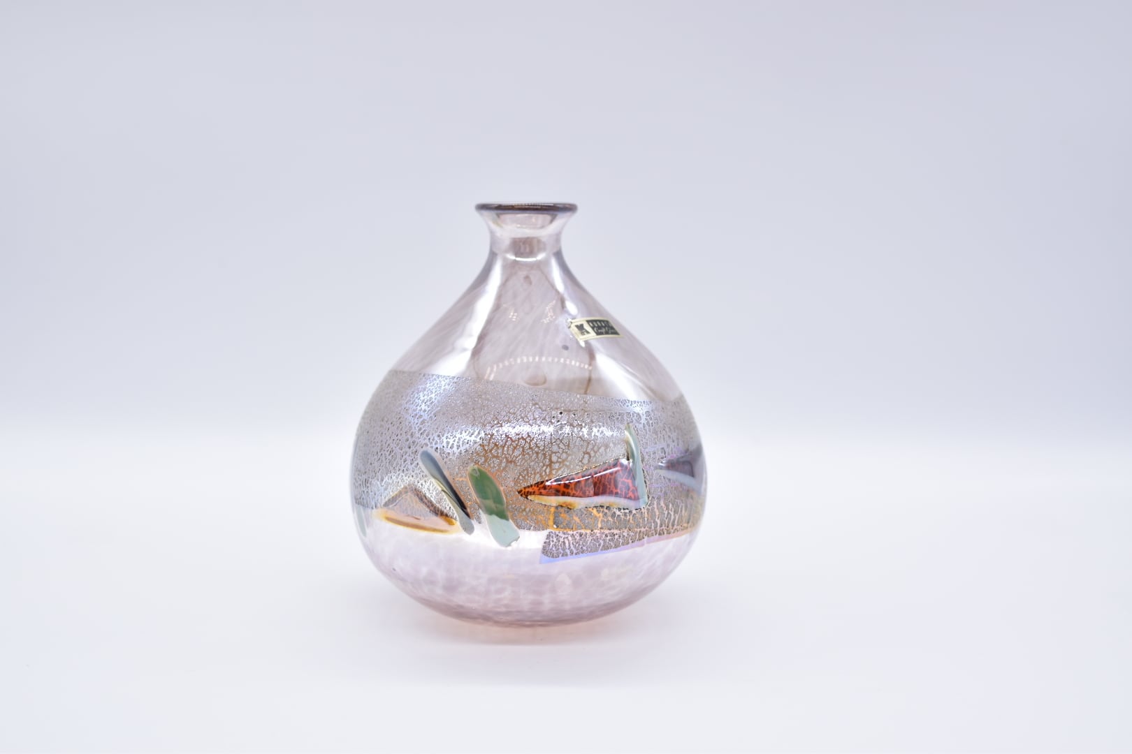 シーグラスを散りばめた様なガラスの一輪挿しです。